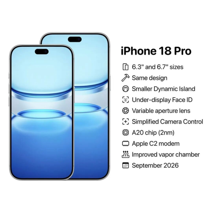 摄影系统迎来重大突破!iPhone 18 Pro 的主摄将首次支持可变光圈技术,用户可以在 f/1.4-f/2.4 之间手动调节,就像专业单反一样自由控制景深和进光量。