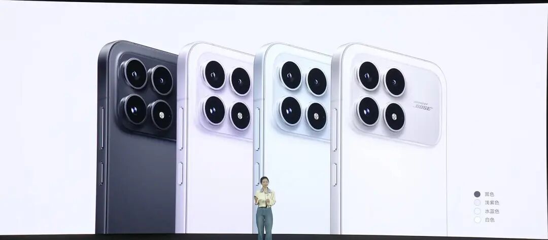 外观设计:Redmi K90 Pro Max 延续系列硬朗风格,采用一体式金属火山口相机 Deco,机身背部在摄像模组右侧加入了尺寸明显的扬声器开孔,并印有 “Sound by Bose” 标志,凸显高端影音调校身份,新机具备大 R 角设计 + 超窄边框。配色方面,提供流金白、黑色两款常规配色,以及采用第三代科技纳米皮材质的特别版丹宁色。