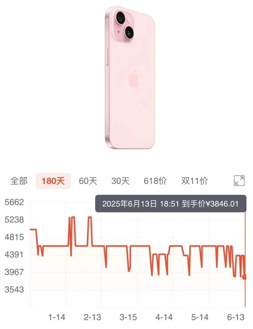 今年618期间,iPhone 15 128GB版叠加PLUS会员券+国补,曾低至3846元,创当时纪录。上月iPhone 17上市仅2周,iPhone 15又大幅跳水:国补后直降至3399元,比首发价便宜2600元,比618低价还省400多元,再刷历史最低。